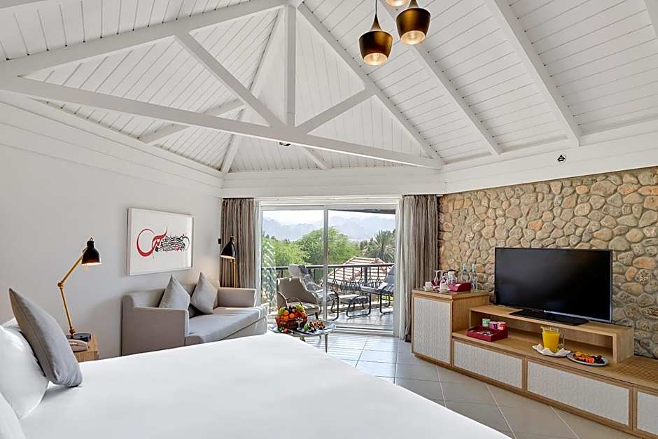 Located in a standalone location, this 120 sqm villa includes 3 separate bedrooms, a private garden area with sun loungers, a spa bath and dining area. Decorated in warm colors, it features a balcony or terrace overlooking the Hajar mountains. It offers a mini-bar, an electric kettle and safety deposit box. Both private bathrooms in the villa feature a walk-in shower.